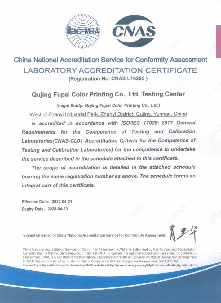 實(shí)驗(yàn)室認(rèn)可證書